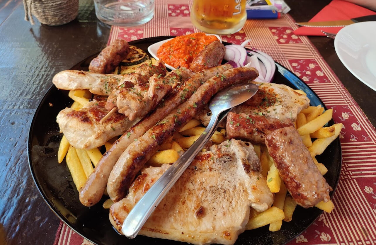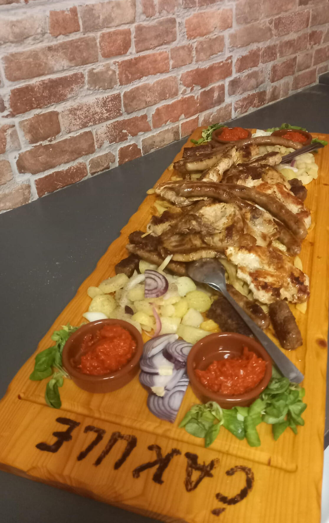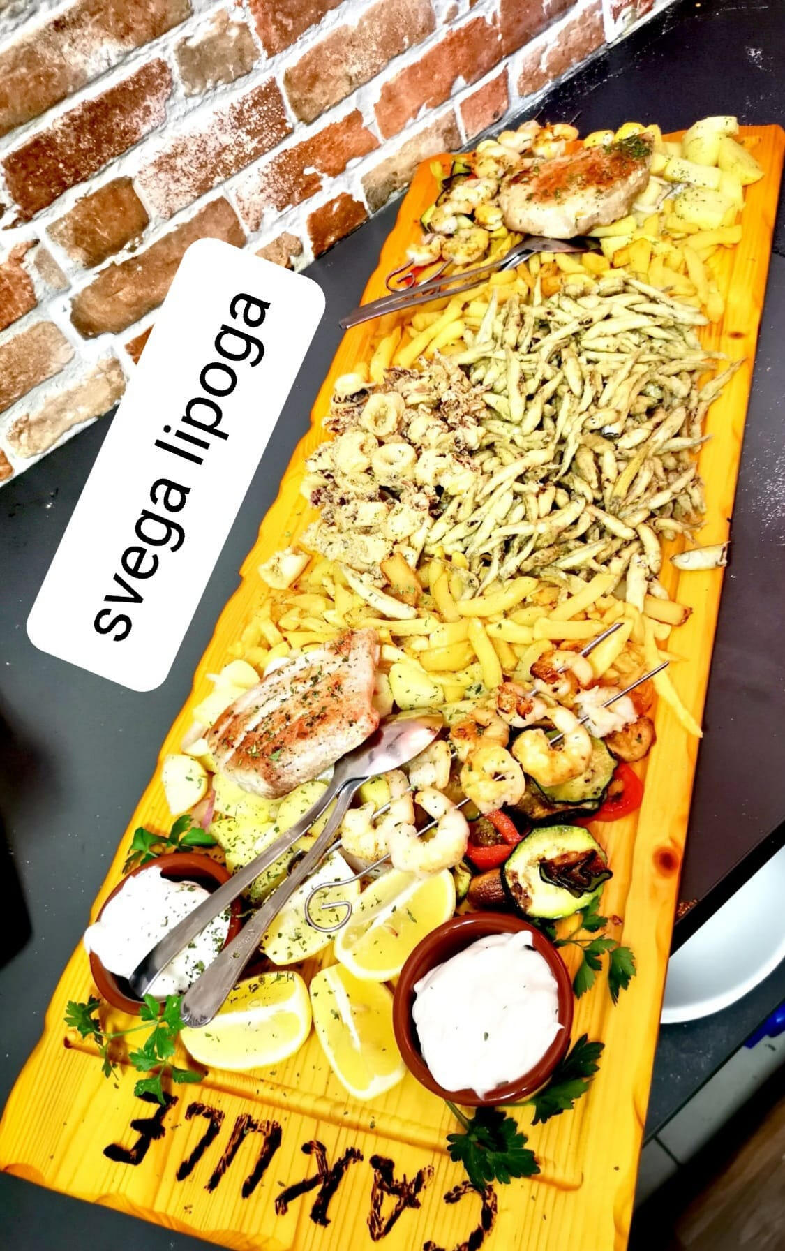 Menù per due con patatine fritte e verdure (affettati, salsicce, chevapi, pollo, bistecca viennese) – € 40,00