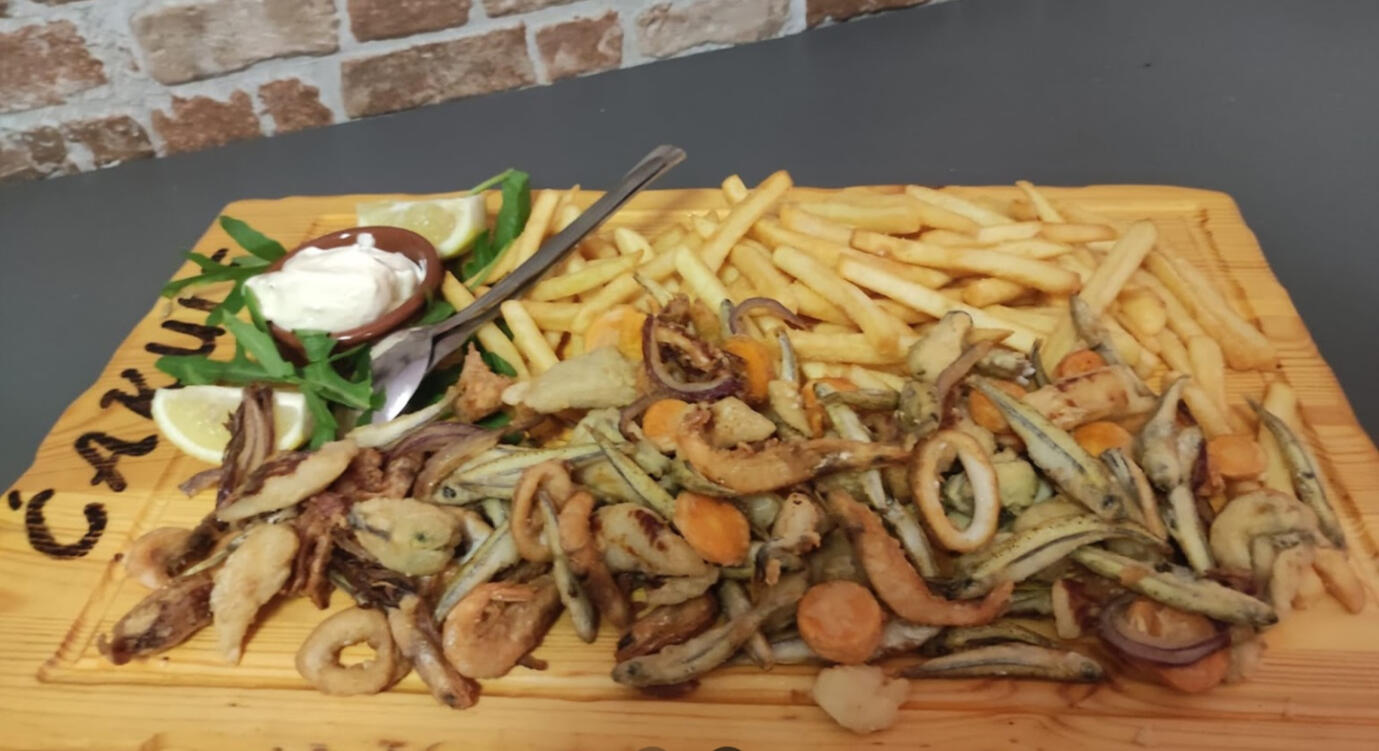 Pesce fritto con contorno (Calamari, Orata, Gamberi) – €18,50